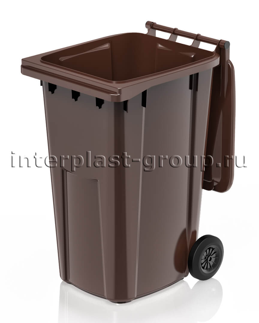 Коричневый мусорный контейнер уличный объемом 240 литров — прочный и долговечный евроконтейнер для мусора, предназначенный для бытовых отходов, биоотходов и органики. Он подходит для частных домов, дачных участков, офисов, предприятий и муниципальных территорий, обеспечивая удобный и гигиеничный сбор мусора.
