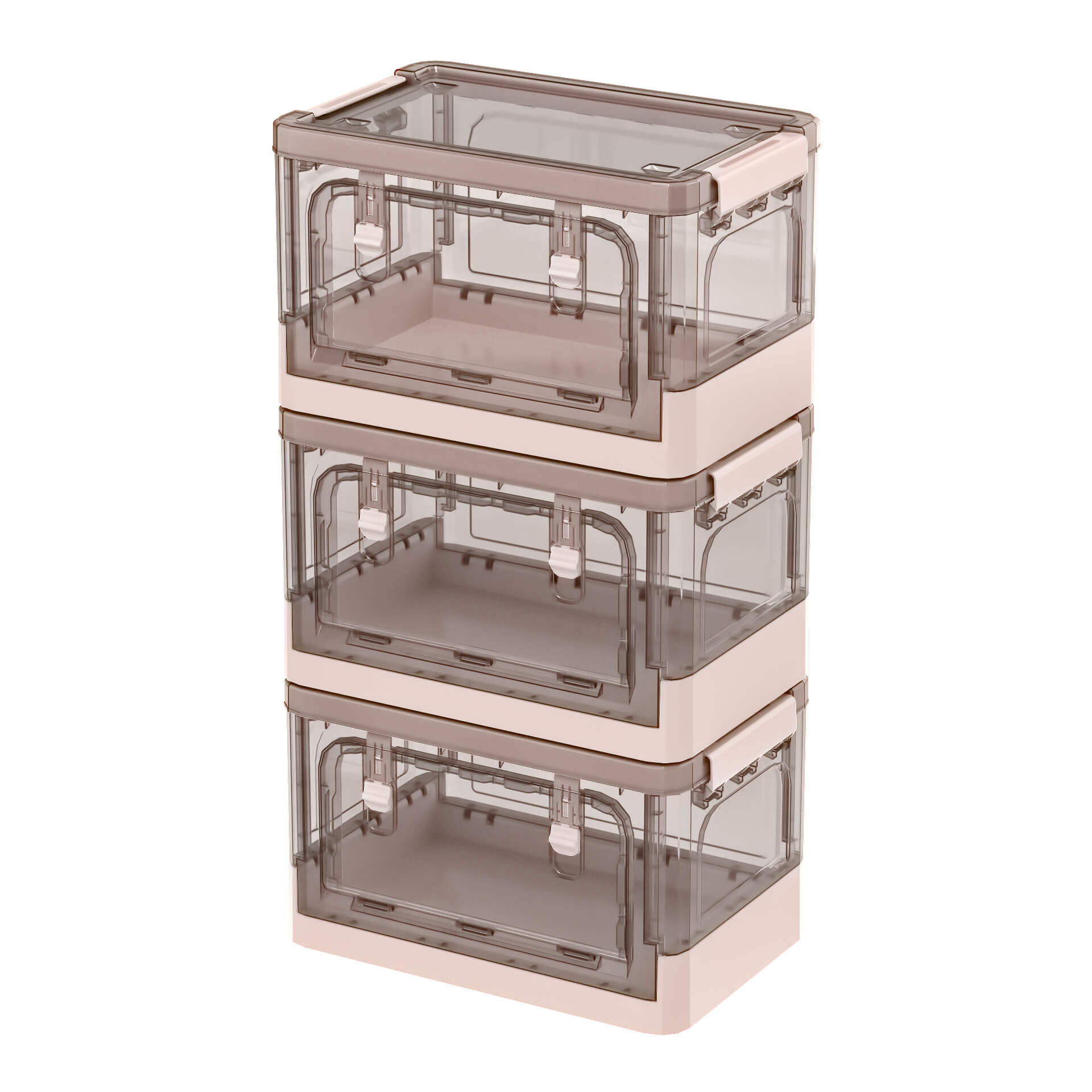 Практичный пластиковый складной ящик сочетает в себе функциональность, прочность и эстетичный дизайн. Прозрачные стенки с благородным коричневым оттенком позволяют легко видеть содержимое, а нежно-розовое дно придает изделию аккуратный и современный вид. Пластиковый контейнер идеально подходит для хранения одежды, игрушек, документов, бытовых принадлежностей и мелочей.