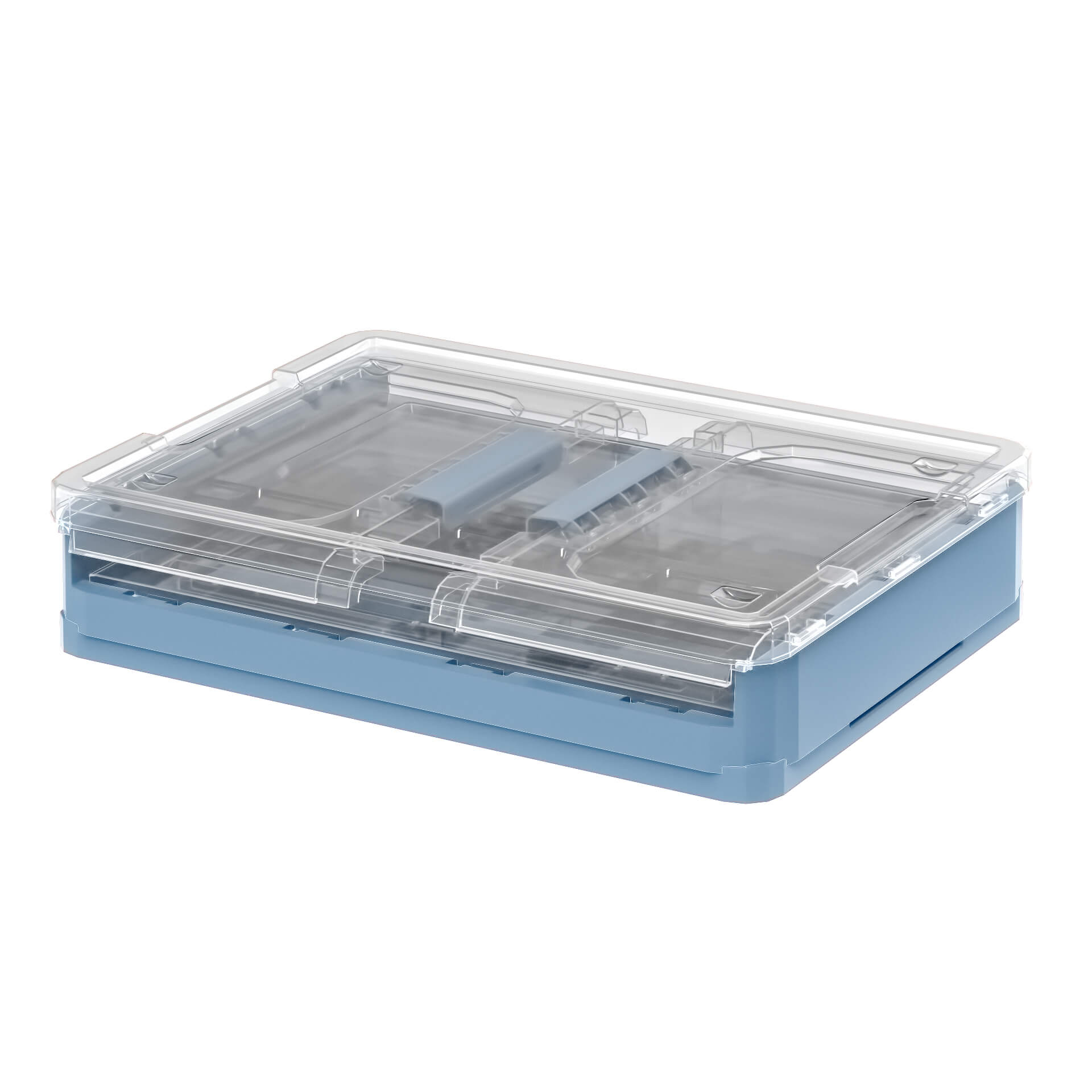 Складной пластиковый ящик 490х360х280 мм, прозрачные стенки, синее дно – удобное и стильное решение для хранения