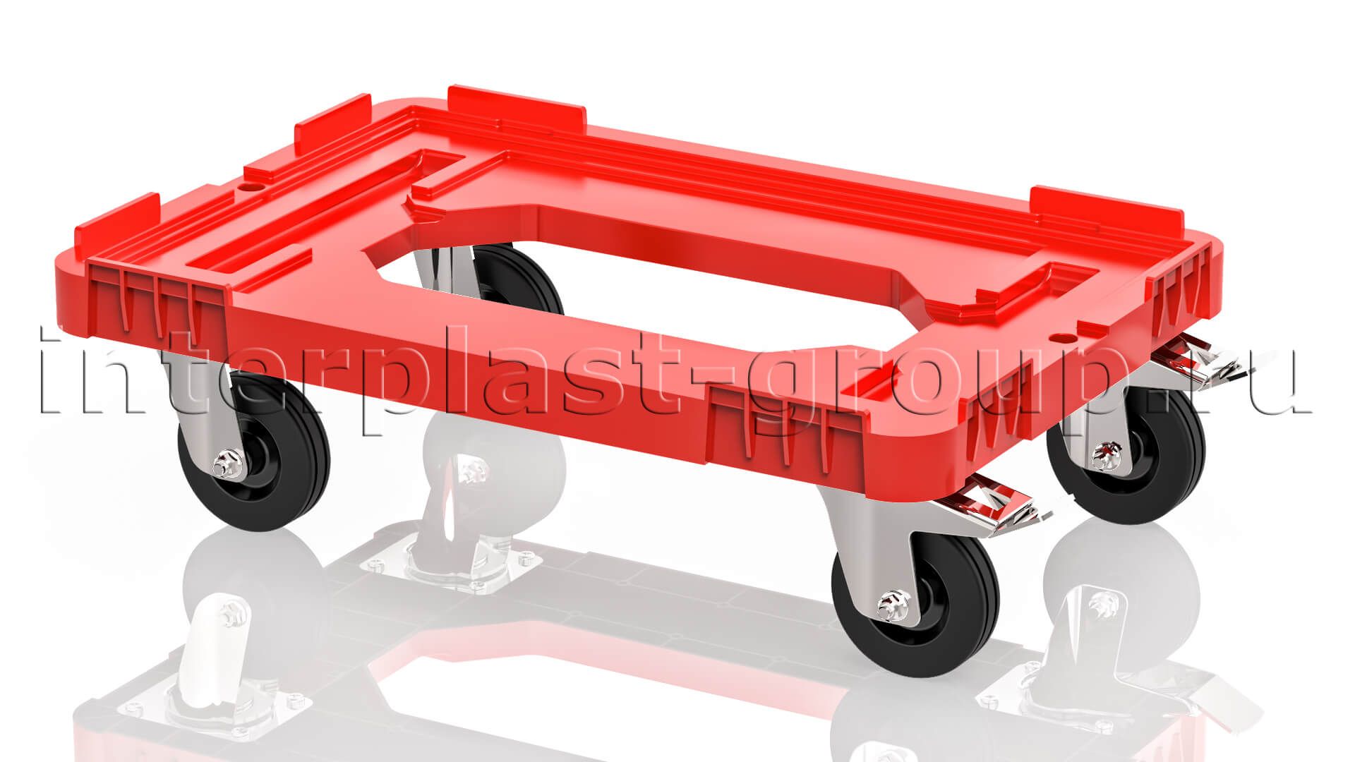 Тележка пластиковая с отверстием 2 колеса с тормозом красная в Мурманске